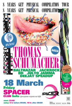 Легендарният немски диджей/продуцент - Thomas Schumacher - се завръща в България след близо 3 годишна пауза. Събитието е част от официалното турне по случай осмата годишнина на култовия берлински лейбъл Get Physical.