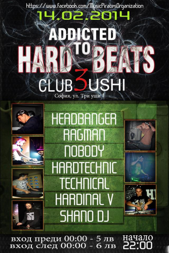 След 3-годишно отсъствие от хард техно сцената се завръщаме, слагайки началото на новата поредица от партита “Addicted to Hard Beats”. Първа част ще се състои на 14.02.2014 в клуб „3 УШИ”, който се намира на ул. „3 уши” №1.