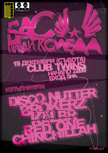 Няколко дни преди Рождество Христово - на 19.12.2009 (събота) – всеки, възползвал се от уникалното ни предложение, ще получи ваучер на стойност 5 лв., който ще включва цяла вечер ободряваща музикална спа терапия от плътен бас и разчупени бийтове. Мястото на събитието е в добре познатия ни клуб TWINS, а часът – 22 ч.