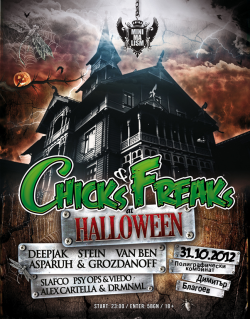 Мощен звук, евтин бар, sexy вампирки, dark визуализации, freak декорации и happy излагации ви очакват на Chicks & Freaks at HALLOWEEN 2012