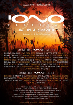 Iono Music is proud to announce their labels 5th aniversary and want to invite you to celebrate a 3-day/night IONO summer festival with them. It will be a familar gathering and loads of the IONO artists will do they the compliment to entertain all with their special sound. So it will be a perfect occasion to enjoy all their international label artists on one festival. As you can expect from them, they offer best quality progressive trance music of all styles, presented by IONO's international top artists, performed in a perfect natural ambiente. See you on the dancefloor....