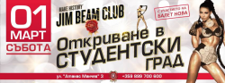 За 15 години Jim Beam Club успя да се наложи като запазена марка-символ на качествено забавление. Години наред заведението е притегателна точка за всички модерни млади хора, търсещи алтернатива на попфолк стилистиката, завладяла Студентски град, както и за множеството гостуващи в красивата ни столица чуждестранни туристи. Освен това Jim Beam Club е един от малкото софийски клубове с 15-годишна история, който е неразривно свързан със спомените на хиляди възпитаници на най-елитните висши учебни заведения в страната. Шеметното парти за откриването на Jim Beam Club Студентски град със сигурност ще бъде само първото от бляскавия пъзел от събития, които буквално ще разтърсят купонджиите в близко бъдеще.