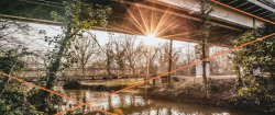 Boston Manor Park immediately presents the contrasts of the capital city. All at once it is both green space and abstract architecture. On approach the site is dominated by the overhead bridge. Powerful lines stream into the distance as the bridge stretches across the park below creating a corridor of pillars. Visitors will be drawn into lush parkland and woodlands, then onward, down the length of the avenue ahead, crossing a bridge over a small moat and onto an island upon which the mainstage will sit, cocooned amongst concrete and trees with water on all sides.
