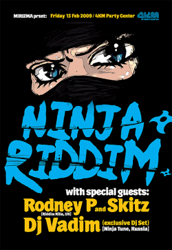 В България английските музикални течения са обект на постоянен интерес, който този месец ще кулминира със събитие на 13 февруари под надслов Нинджа Ридим (NINJA RIDDIM). Партито организирано от промоутърския екип MIRIZMA в клуб 4км ще представи легендарния ди джей Вадим DJ Vadim и англичаните Родни Пи и Скитз.