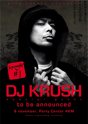Билетите за шоуто в парти център 4КМ на 8 ноември с един от най-дългоочакваните японски музиканти в България DJ Krush и английското дуо Atomic Hooligan се продават в мрежите на ticketstream.bg и eventim.bg на цена от 20лв.