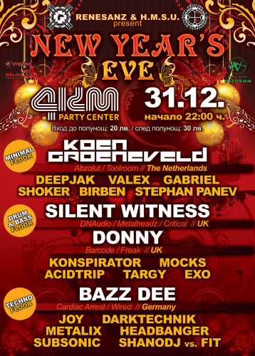 Двете най-успешни български ъндърграунд организации - Renesanz и H.M.S.U. - за трета поредна година обединяват сили за незабравимо посрещане на новогодишната вечер. Специалното събитие ще се проведе в столичния парти център "4 КМ", който ще бъде преобразен за целта с уникална визия. Посетителите на култовото софийско заведение ще могат да избират измежду 3 отделни зали и 3 стила музика едновременно – минимал, техно и дръм енд бейс.