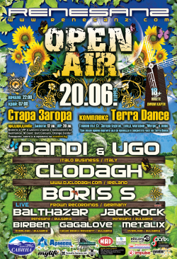 Организаторите от Renesanz откриват сезона на големите опън еър партита с първото си лятно събитие, което ще се проведе на 20 Юни, събота. След успешния фестивал Metamorphosis в Пловдив, Renesanz продължават да развиват концепцията си за мащабни ивенти из цялата страна, като този път се спират в центъра на България – Стара Загора. Мястото на събитието ще е комплекс Terra Dance, който се намира на няколко километра извън града.