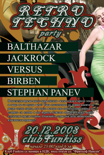В последно време много хора питаха - къде отиде старото техно и защо не се пуска вече? Така постепенно се появи идеята за ретро техно парти, на което всички ние ще изтупаме праха от старите си плочи и ще върнем блясъка на онзи саунд, който слушахме преди години. Очаквайте сериозна доза забавление с класически привкус!