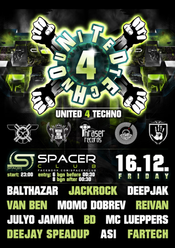 събитие United 4 Techno ще се проведе в столичния клуб Spacer на 16 декември, петък.