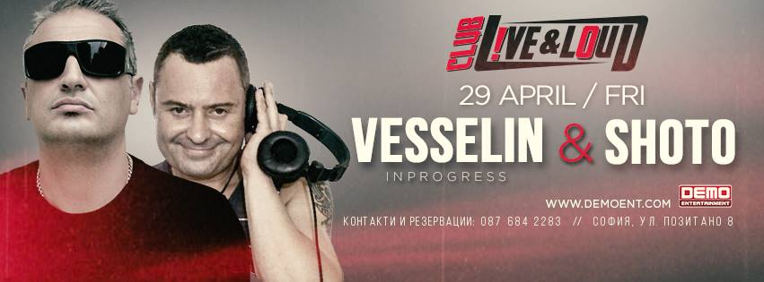 Всички фенове добре знаят за страхотните партита, които са правили Vesselin и Shoto през годините.След като многократно сме ги виждали и поотделно на сцената, отново е ред да се насладим на двамата заедно. Датата е 29 Април, а мястото - вече добре познатият club Live & Loud в София на Позитано 8. Заповядайте и нека се оставим точно тази музика да ръководи нашите емоции в нощта!
