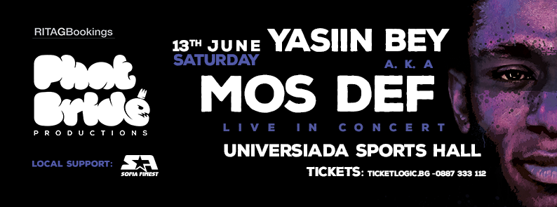 Никой да не мърда! Yasiin Bay а.к.а. Mos Def идва в София! Датата е 13-ти юни, 15 години след издаването на най-епичния му албум “Black on Both Sides”, признат за един от най-значимите в историята на хип-хоп музиката, Mos Def най-сетне ще огрее и нашата сцена!