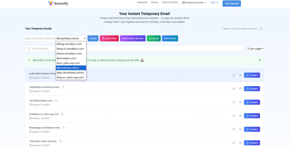 Boomlify.com isn’t just another temp mail website. It’s a fully functional email management tool that gives you complete control, extreme flexibility, and unmatched ease of use — all for free.