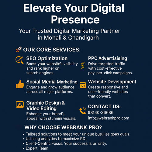In today’s competitive digital era, a simple website is no longer enough. Businesses must build visibility, engagement, and meaningful customer interactions to succeed online. That’s where Webrank Pro comes in. Based in Mohali and Chandigarh, we’re a dedicated digital marketing agency helping local and national brands grow their presence online.